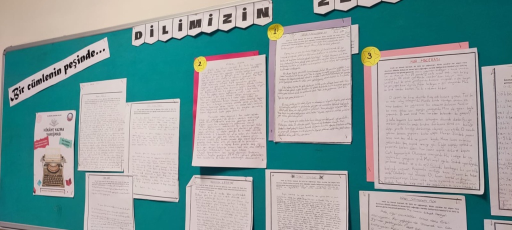 Dilimizin Zenginlikleri projesinde kapsamında "Bir Cümlenin Peşinde..." etkinliğinde okulumuzda hikaye yazma yarışması düzenlendi. Beğenilen hikayeler okul panolarımızda paylaşıldı.