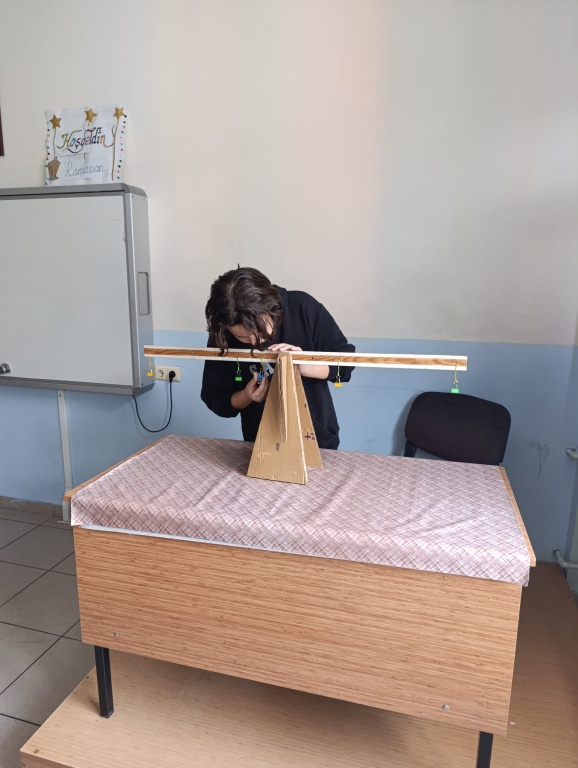 Matematik dersinde eşitliğin korunumu ilkesine yönelik öğrencilerin tasarladığı terazilerle denklem çözümleri gerçekleştirildi.