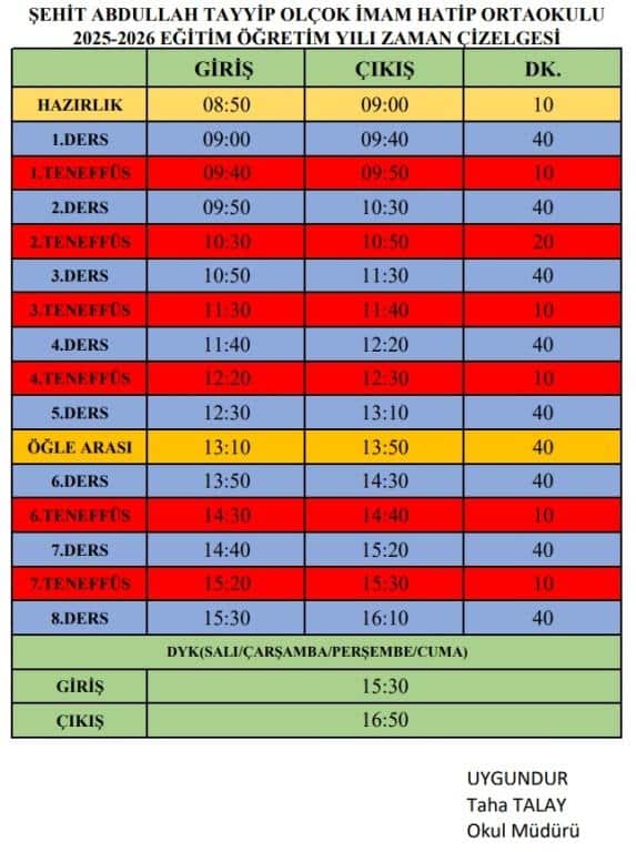ZAMAN ÇİZELGESİ İÇİN TIKLAYINIZ